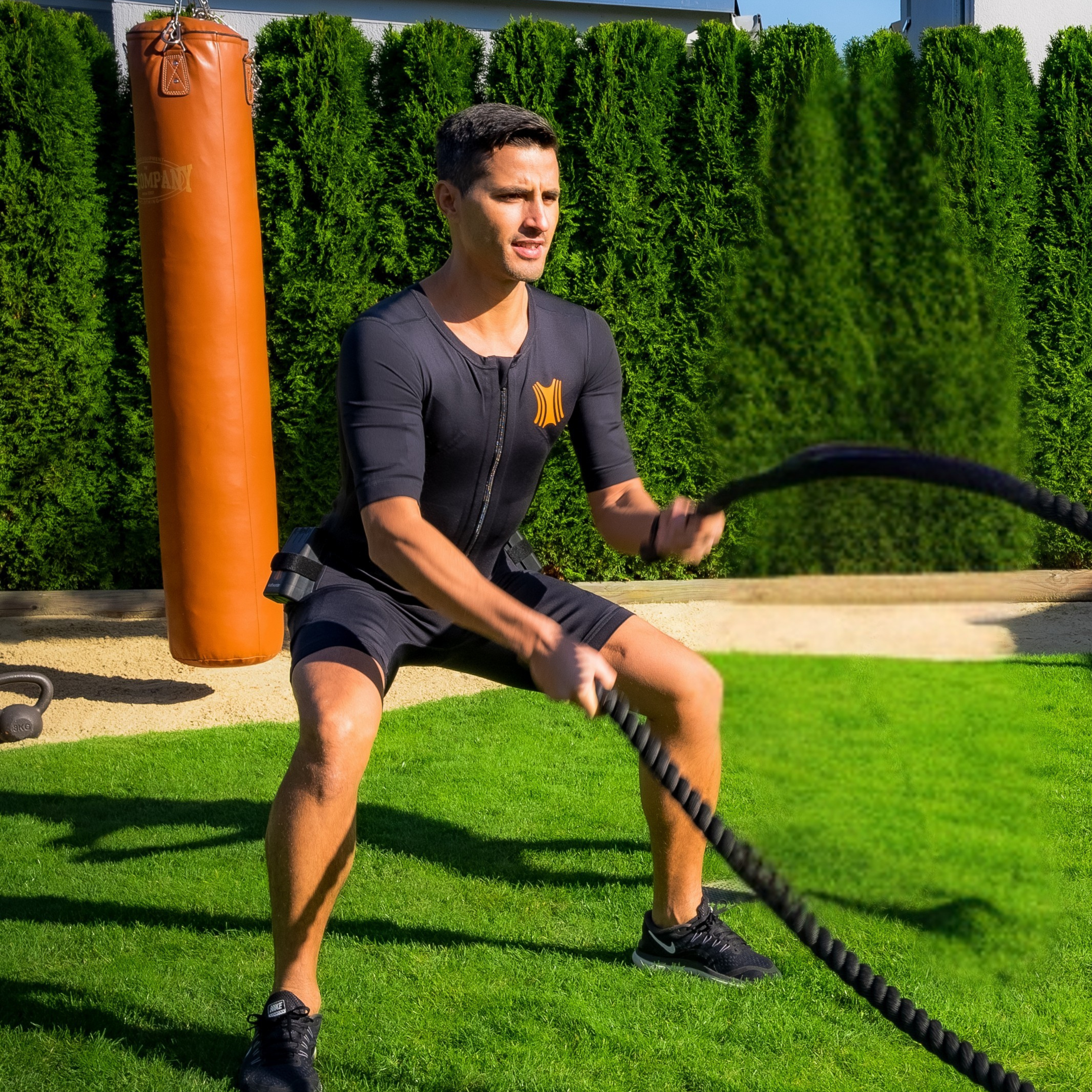 Unsere EMS / EMA Trainingsanzüge sind speziell verdrahtet, sodass sich mit ihnen auch sehr dynamische Bewegungen uneingeschränkt durchführen lassen.